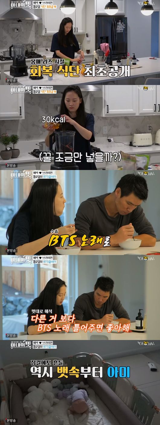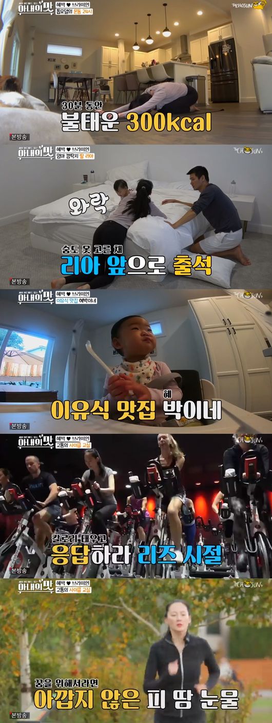 이어서 혜박은 홈트레이닝을 하며 몸매 가꾸기에 나섰다. 그 사이 남편 브라이언은 딸과 함께 시간을 보냈다. 하지만 엄마 혜박이 오자 엄마 껌딱지로 돌변해 웃음을 자아냈다.