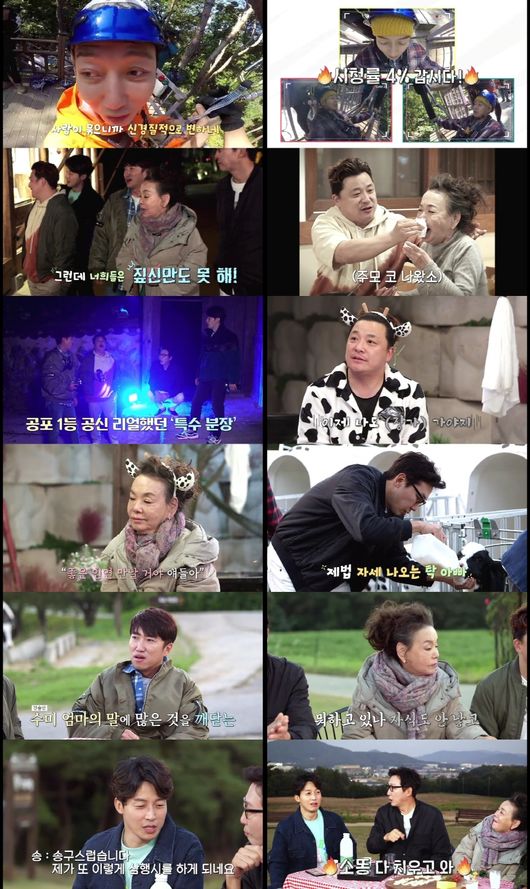 이후 ‘수미네 가족’은 민속촌으로 향했다. 전통 공예품을 구경하던 중 짚신을 본 김수미는 “너희들은 짚신만도 못 해, 짝이 없잖아”라고 일침 했고, 아들들은 “갑자기 기운이 빠진다”며 침울해했다. 이어진 ‘공포 체험’에서 저승사자의 기를 누르며 패기 넘치게 도전했던 김수미는 비명과 함께 중도 포기를 선언한 반면, 폐가에 진입한 아들들은 귀신들의 공격에 하얗게 질린 채 정신없이 탈출하는 ‘리얼 리액션’으로 웃음을 안겼다. 특별한 체험 덕에 한층 끈끈해진 단합력을 드러낸 시간이었다.