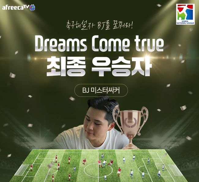 이번 ‘Dreams come true, 축구 해설자 BJ를 꿈꿔라!’ 프로젝트는 축구 해설자를 꿈꾸는 총 120여 명 몰려 높은 관심을 증명했다. 심사를 통해 선정된 16명이 아프리카TV BJ들이 내셔널리그 경기(20R-25R 중계)를 1차, 2차 미션을 진행하였고 최종 4인이 3차 미션(26R-28R 중계)과 스튜디오 실기 평가 등을 통해 최종 우승자를 선발하였다.