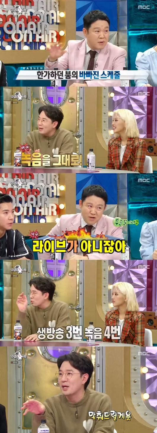 이날 MC들은 붐의 라디오를 언급했다. 김구라는 "붐이 바빠지면서 녹음을 너무 많이 한다는 얘기가 있다"라고 물었다. 이에 붐은 "녹음을 그대로 라이브처럼 한다"라고 말해 주위를 웃음바다로 만들었다.