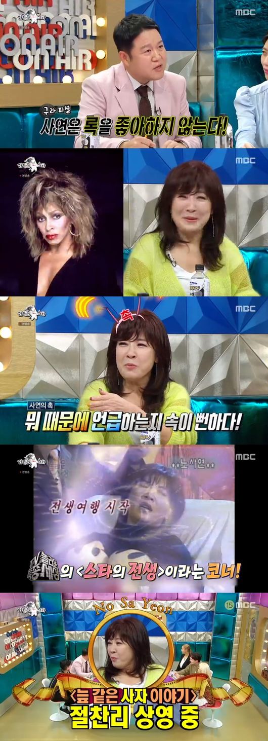 김구라는 "나는 노사연씨가 락을 했으면 좋겠다. 티나 터너 느낌이 난다고 말했더니 싫다고 하더라"라고 말했다. 이에 노사연은 "나는 뭐 때문에 구라가 나에게 티나 터너라고 이야기하는지 안다"라고 말해 웃음을 자아냈다.