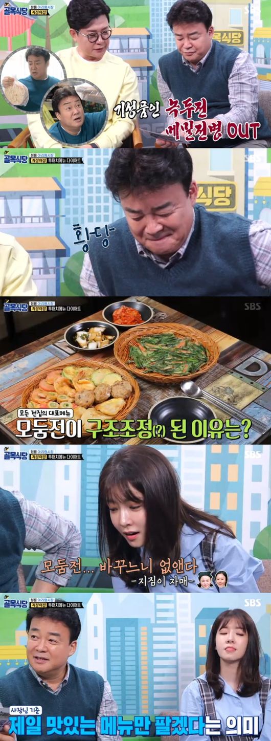 하지만 모둠전도 완전히 없앤 모습이 백종원을 황당하게 했다. 백종원은 "제일 맛있는 메뉴만 팔겠다는 의미가 있어, 모둠전은 전문이 아니란 뜻"이라면서 "이러면 전 찌개도 안 된다"고 꼬집었다. 모둠전 없이는 전 찌개도 불가하기 때문이었다. 자세한 얘기는 만나서 나눠보기로 했다.