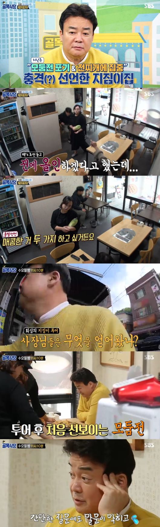 백종원이 개업하기 전 다른 전집들을 많이 가본 적 있는지 묻자, 사장은 "전찌개는 못 봤다"고 했다.