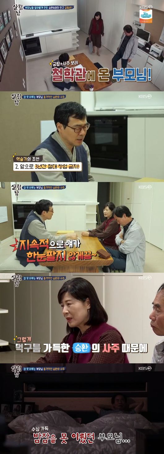 30일에 방송된 KBS2TV '살림하는 남자들'에서는 김승현의 부모가 사주를 보고 와서 밤잠을 못 이루는 모습이 그려졌다.