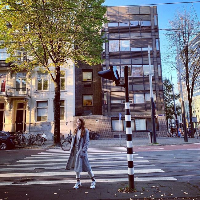 특히 키 168cm인 성유리는 작은 얼굴과 더불어, 긴 다리로 8등신 몸매를 뽐내고 있다. 이처럼 암스테르담 거리를 런웨이처럼 보이게 하는, 그의 늘씬한 몸매와 아름다운 미모가 놀랍다.