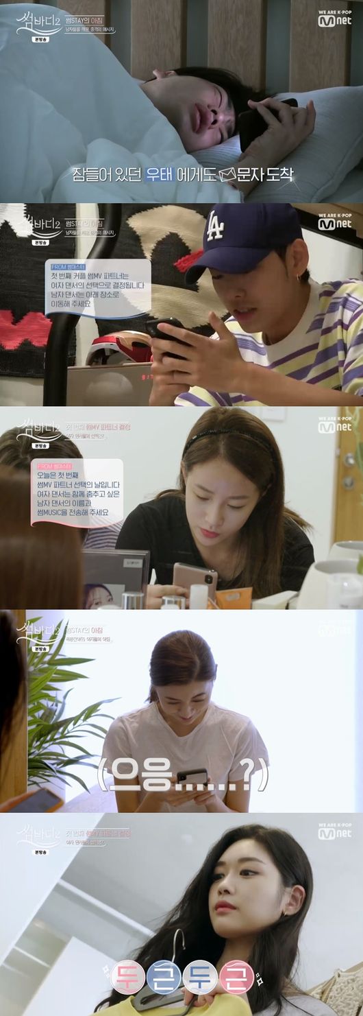 이날 아침 남자 댄서들의 잠을 깨우는 충격적인 문자 한 통이 발송됐다. 여자 댄서들의 선택으로 썸뮤비가 진행된다는 내용이었다. 여자 댄서들이 함께 추고 싶은 남자 댄서의 이름을 적어서 썸뮤직과 함께 발송하는 것. 여자 댄서들 역시 선택을 앞두고 떨려 했다.