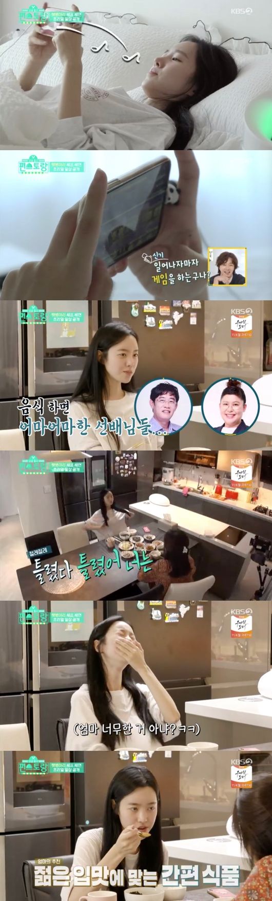 진세연은 일어나자마자 핸드폰 게임을 했다. 그리고 세안을 한 후 주방으로 향했다. 진세연의 어머니가 준비한 메인 메뉴는 홍합미역국이었다. 이외에도 식탁에는 맛깔스러운 반찬들이 즐비해 침샘을 자극했다.