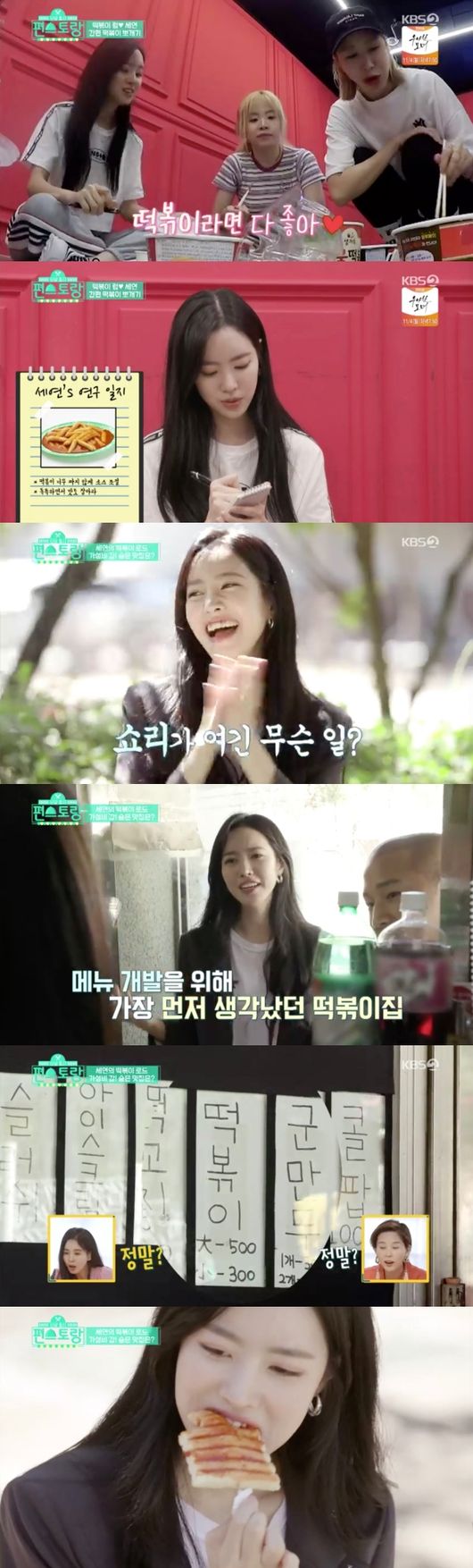 진세연은 매운 떡볶이 위에 단호박이나 고구마를 얹어도 좋을 것 같다고 말했다. 하지만 떡볶이 위에 토핑을 얹는 것 자체가 아이디어를 차용하는 것이기 때문에, 진세연은 사장님에게 허락을 구했다. 그러자 사장님은 맛있는 건 모든 사람이 먹어봐야 한다는 철학을 설파하며, 진세연의 부탁에 흔쾌히 수락했다. /notglasses@osen.co.kr