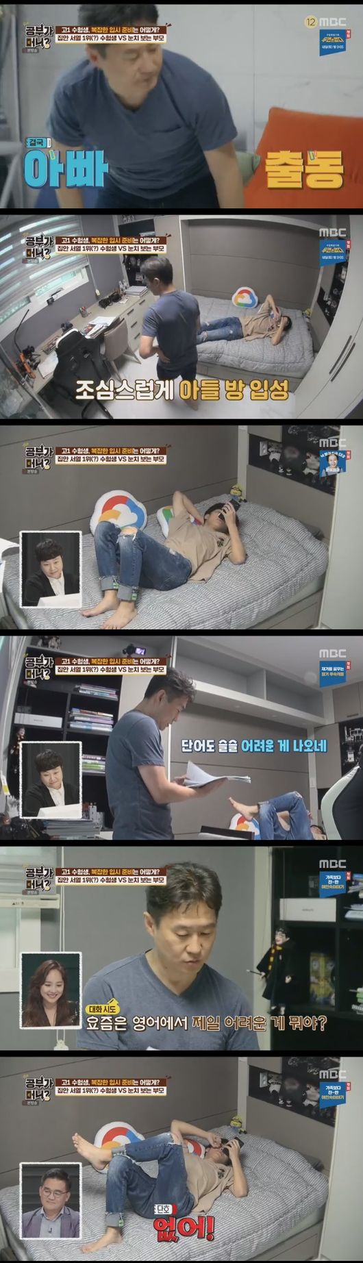 거실에 있는 부부는 자막이 있는 영상을 소리 없이 보고 있었는데 정원이 희원이 진짜 공부를 하는건지 궁금하다며 아빠를 희원의 방으로 보냈다. 희원은 침대에 누워서 핸드폰을 하고 있었고, 아빠는 "공부 하고 있는 줄 알았는데" 라고 말을 흐렸다. 이어 "영어에서 제일 어려운 게 뭐냐"고 대화를 시도했지만 희원은 "없어"라는 말로 대화를 끊었다. 아빠는 "쉬엄쉬엄 하라"고 "맨날 안하고 있으니까 밤에 몰아서 하잖아"라며 핀잔을 주었다. /anndana@osen.co.kr