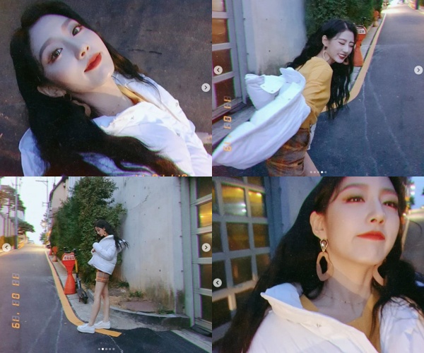 정예인은 지난 1일 러블리즈 공식 SNS에 “안녕? 밤나들이”라는 글과 여러 장의 사진을게재했다.