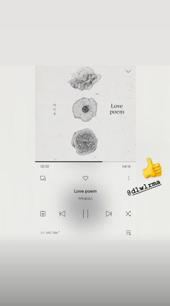 미나는 2일 자신의 SNS에 지난 1일 발표된 아이유의 새 디지털 싱글 ‘Love poem’을 듣고 있는 걸 인증하는 사진을 게재했다.