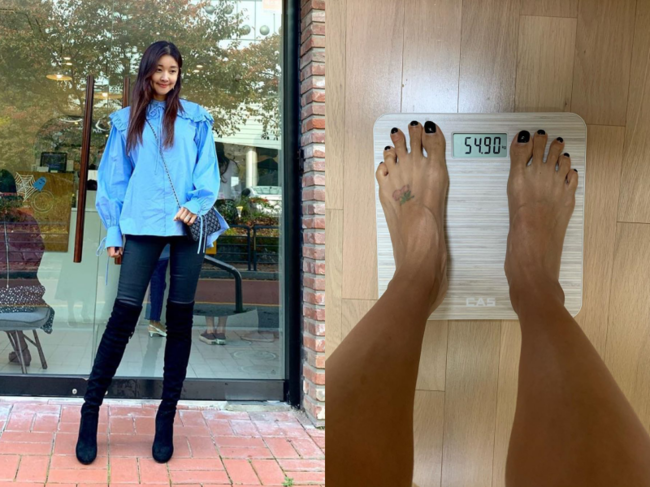 공개된 사진은 김빈우가 오른 체중계를 찍은 것. 체중계에는 54.8kg이 기록돼 있다. 김빈우는 "아직 잘 지켜지고 있는 유지어터"라는 말을 덧붙여, 여전히 몸무게 유지에 열중하고 있음을 알렸다.