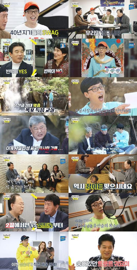 2일 방송된 MBC ‘놀면 뭐하니?-뽕포유’ (연출 김태호, 임경식, 채현석)에서는 ‘합정역 5번출구’ 편곡 녹음부터 발성 연습, 의상 맞추기, 안무 연습까지 일사천리로 진행된 ‘유산슬의 데뷔 앨범 프로젝트’ 여정이 펼쳐졌다.
