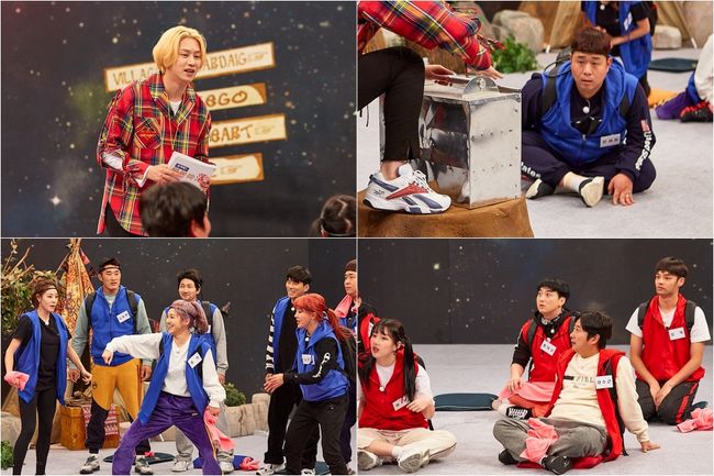 웃는 상이라 머리에 두른 호스에서 물이 자꾸 쏟아진다는 홍윤화의 억울한 민원이 이어지는 가운데, 출연진들은 ‘잘 노는 팀’과 ‘못 노는 팀’으로 나뉘어 추억의 퀴즈를 풀어나간다. 철가방 안에 든 물건을 맞춰야 하는 ‘철가방 퀴즈’에서는 김희철이 철가방을 자유자재로 돌리는 고급 손기술에 실패하자 정답 주워 먹기가 벌어지고, 이에 멤버들은 “대한민국 역사상 가장 새로운 진행”이라며 칭찬(?)을 아끼지 않았다는 후문이다.