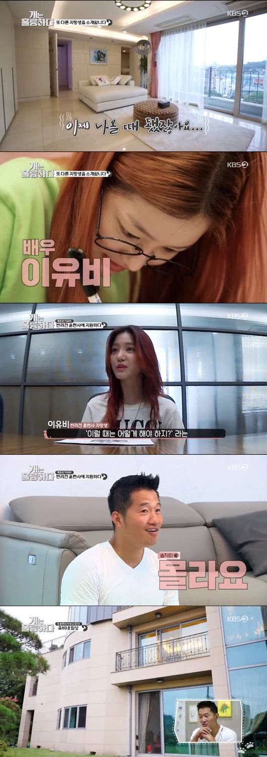 이유비의 집은 넓직한 내부를 자랑해 주위를 깜짝 놀라게 만들었다. 이유비는 훈련사로 나서기 전부터 강아지를 키워본 적도 없고 키우는 상황도 아니었다. 이유비는 "너무 예쁘지만 사실 개에 대해 잘 모르고 두렵다"라고 말했다.
