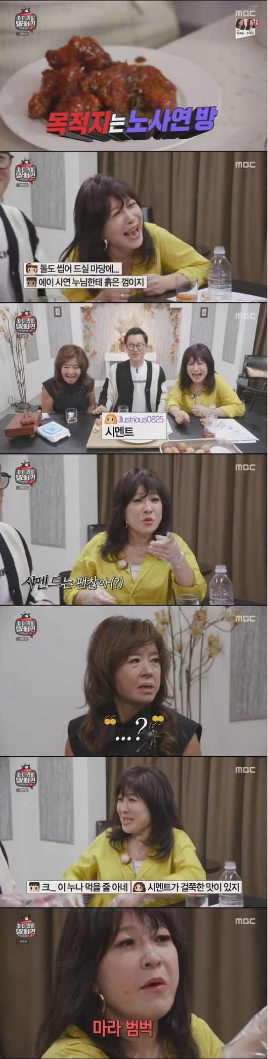노사연방으로 치킨을 가지고 간 유진. 마라를 가지고 치킨을 만들었다며 사연과 사봉에게 접시를 내밀었다. 노사연은 유일하게 안먹는 게 있다며 맞춰 보라고 했다. 지상렬은"흙"이라고 했고 '시멘트' , '남편의 사랑' 같은 채팅이 이어졌다. 이어 사연은 자신이 유일하게 먹지 않는 것이 "나이"라고하며 스튜디오를 싸늘하게 했고, "거 누님 너무 한거 아니오"라는 채팅이 이어졌다.