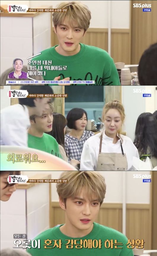 4일 밤 방송된 SBS플러스 예능 프로그램 '밥은 먹고 다니냐?' 6회에서는 김재중이 하루 장사의 마지막 손님으로 김수미 국밥집을 찾았다.