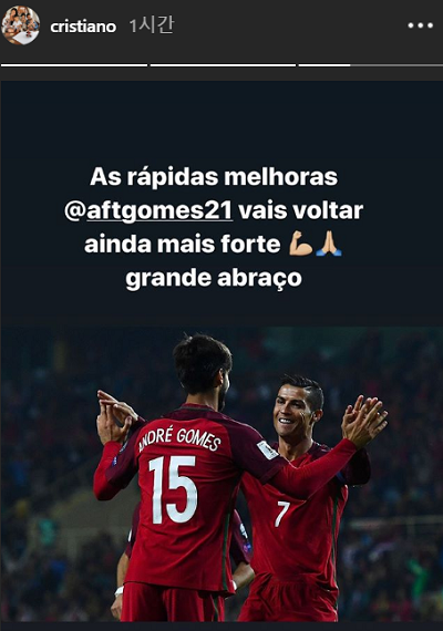 호날두는 고메스와 함께 포르투갈 대표팀에서 뛰고 있다. 호날두는 자신의 SNS에 "고메스는 더 강해져서 돌아올 것이다"고 적었다. / 10bird@osen.co.kr
