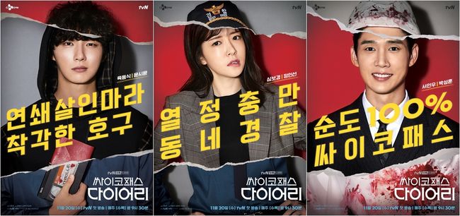 tvN 새 수목드라마 ‘싸이코패스 다이어리’는 ‘청일전자 미쓰리’ 후속으로 오는 11월 20일(수) 밤 9시 30분 첫 방송된다.