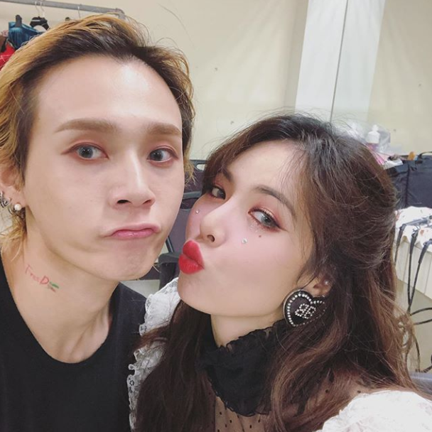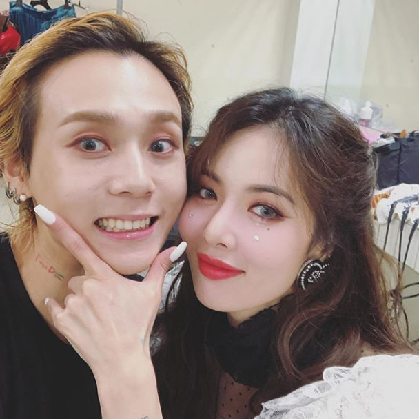 가수 현아와 던이 대기실에서도 달콤한 애정을 보였다.