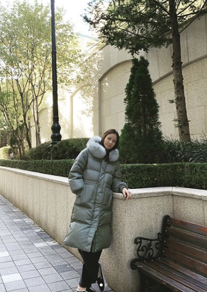 손태영은 4일 자신의 인스타그램에 “조금씩 추워지는 날씨도... 어두운 계통만 입던 나.. 선물 받은 에메랄드 그린 색도 오늘 무척 이뻐 보이네요^^”라는 메시지를 적었다.