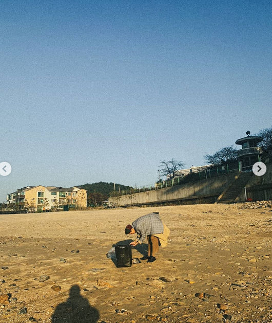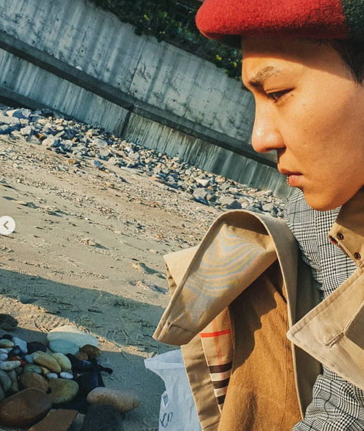 공개된 사진 속에서 송민호는 해변가 앞에서 돌을 수집하는 모습을 공개, 돌을 빤히 쳐다보며 생각에 잠긴 모습이 눈길을 끈다. 송작가답게 예술가의 포스를 드러냈다.