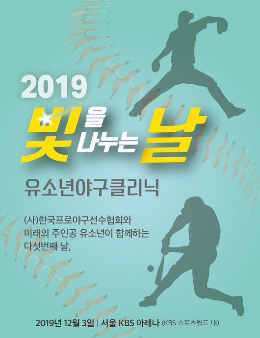 프로야구 10개 구단 선수들이 뜻을 모아 매년 12월 개최하는 유소년 야구클리닉 “빛을 나누는 날”이 오는 12월 3일(화)에 열린다.