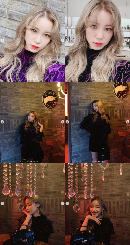 전효성은 5일 자신의 인스타그램에 “금발 안녕”이라는 메시지와 함께 사진 여러 장을 올렸다. 사진에서 전효성은 긴 금발 웨이브 헤어를 자랑하며 인형 셀카를 찍고 있다.