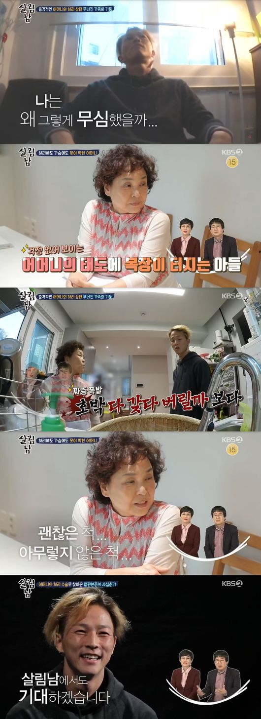 母는 "의사는 절반이 뻥"이라면서 아들 앞에서 웃어보였으나 사실은 자식들 마음을 생각했다. 母는 "자식들이 자책할까봐, 눈물이 쏟아질 것 같았지만 아무렇지 않게 담담히 있었다"면서 "정말 슬펐다"며 속내를 전했다. 이를 알리 없는 현준은 속상함을 폭발했다. 현준은 "스스로에게 화가나서 오히려 엄마에게 화풀이한 것 같다"며 가슴 아파했다. 그러면서 母대신 주방 일을 도맡았다. 母는 "우리 아들이 효자네"라며 미소지었다.