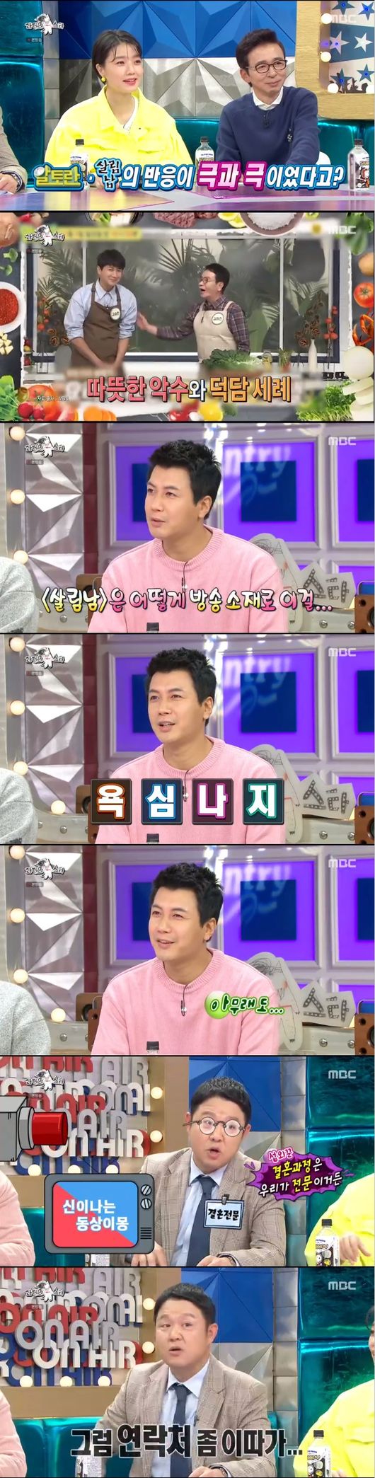 승현은 "연애가 밝혀진 뒤 알토란과 살림남의 반응이 극과극이었다"고 했다. "알토란은 응원을 해준 반면 살림남은 어떻게 이를 방송에서 보여줄 수 있을지를 궁리했다"고. 이에 구라가 "동상이몽은 어떠냐"고 묻자, 승현은 "연락처를 건네겠다"고 했다.