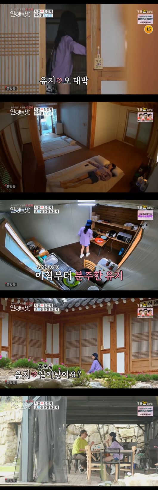 다음날 김유지는 약속시간보다 먼저 일어나 브런치를 준비했고 정준을 불러냈다. 빵을 본 정준은 "웬 빵이냐"고 물었고 김유지는 "제가 아침에 만들었다"고 대답했고 정준은 "귀엽다. 이걸 어떻게 먹어"라며 애정을 드러냈고 김유지 입에 묻은 빵을 손으로 닦아줬다.