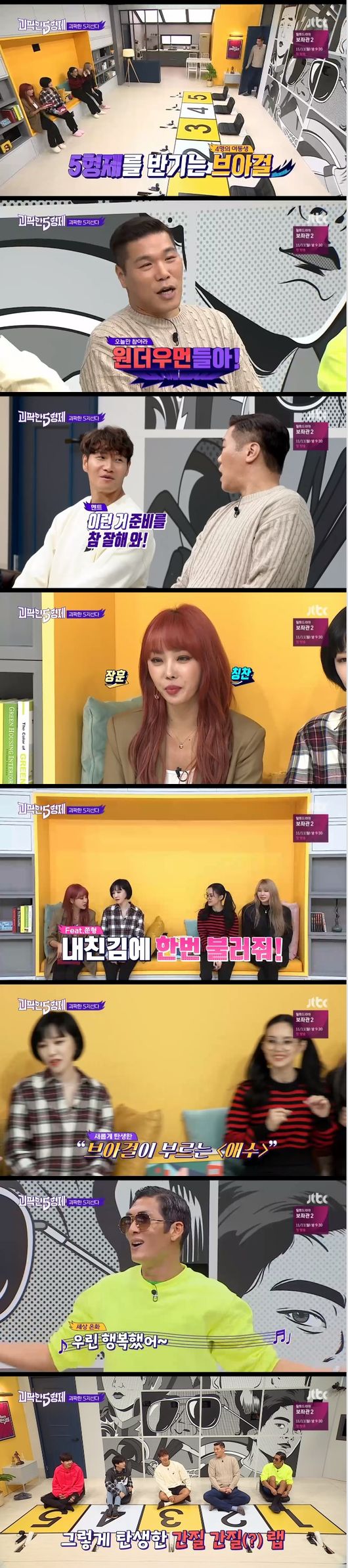 괴팍한 5형제'에 브아걸이 출연, 형제들에게 가요계 선배로서의 후배와 친해질 수 있는 법을 물었다.