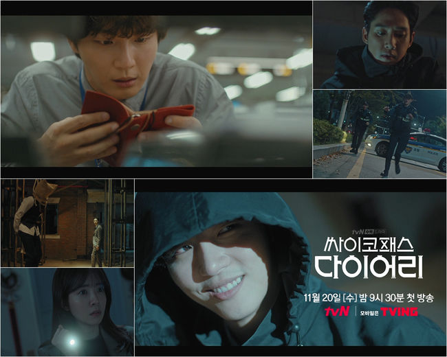 오는 11월 20일(수) 밤 9시 30분에 첫 방송되는 tvN 새 수목드라마 ‘싸이코패스 다이어리’(연출 이종재/ 극본 류용재, 김환채, 최성준/ 제작 스튜디오드래곤, 키이스트)는 어쩌다 목격한 살인사건 현장에서 도망치던 중 사고로 기억을 잃은 호구 육동식(윤시윤 분)이 우연히 얻게 된 살인 과정이 기록된 다이어리를 보고 자신이 싸이코패스 연쇄살인마라고 착각하며 벌어지는 이야기로 ‘백일의 낭군님’을 연출한 이종재 감독, ‘피리 부는 사나이’, ‘개와 늑대의 시간’ 등을 집필한 류용재 작가가 의기투합한 작품으로 기대를 높이고 있다.
