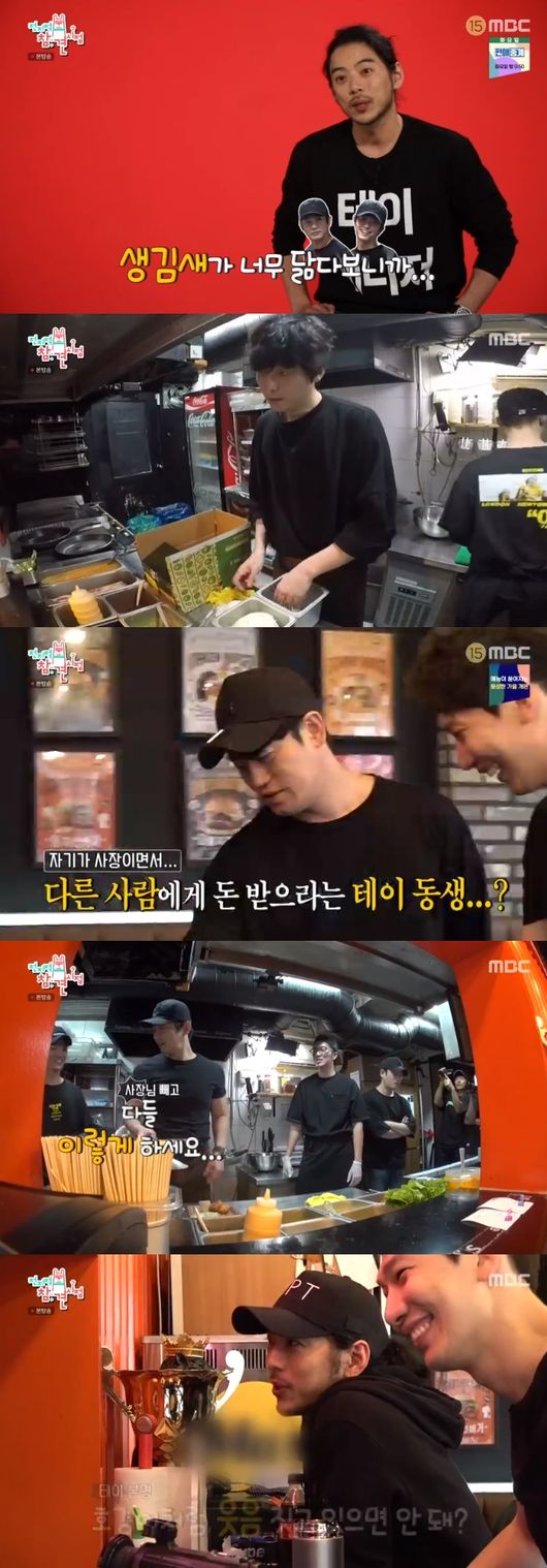 이에 양세형은 "지는 많이 먹는데.."라고 말해 웃음을 자아냈다. 테이는 중간 중간 홍보영상도 남기고 서빙까지 나서며 가게 일을 도왔다. 이후 테이는 직원들과 점심 식사를 가졌고 테이 닮은 꼴 동생의 표정에 모두 웃음을 자아냈다. 패널들은 "진짜 똑같다"며 놀랐고 테이는 "저 표정을 연습했더라."고 말했다.