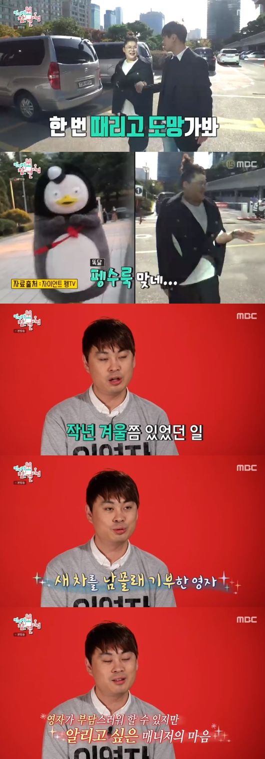 이날 이영자는 송팀장에게 "나 오늘 손을 못 쓴다"며 요즘 대세 펭수룩을 선보여 웃음을 자아냈다. 이후 송팀장은 이영자가 후원하는 보육원의 가을 운동회에 참석한다고 전했다. 이어 송팀장은 이영자가 평소에도 아이들을 향한 애정이 남다르다고 전하면서"작년 겨울쯤에는 보육원 아이들의 통학 차량이 노후됐다는 소식을 듣고 선배님이 새 차도 몰래 기부했다"고 말했다.