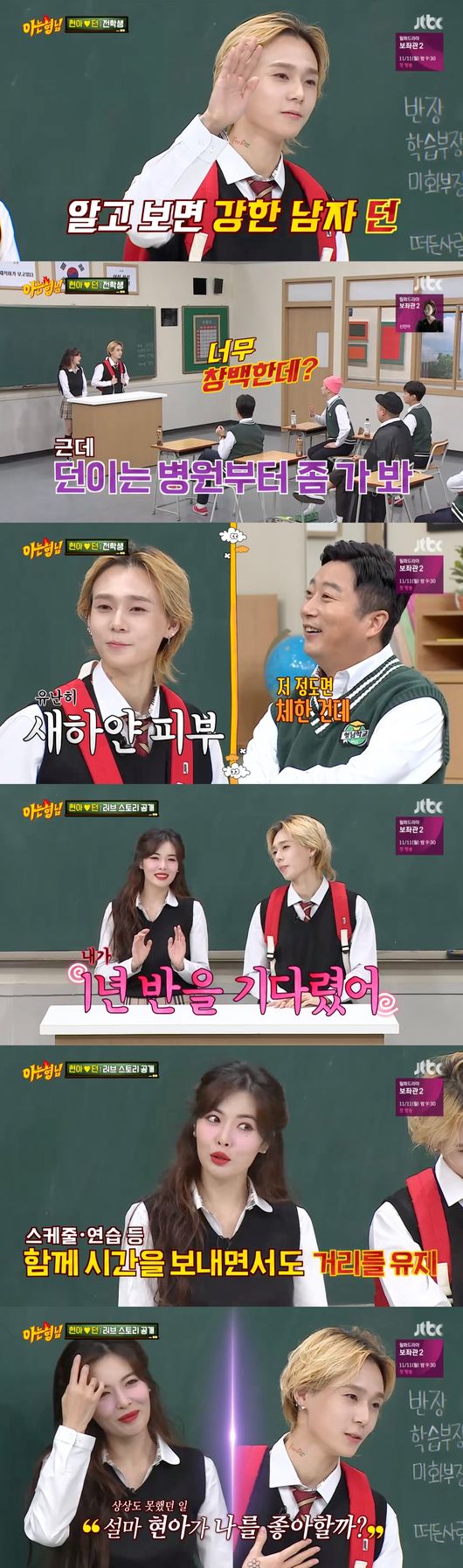 지난 9일 방송된 JTBC 예능 프로그램 '아는 형님'에는 방송 최초로 동반 출연을 결심한 현아 던 커플이 게스트로 찾아왔다.