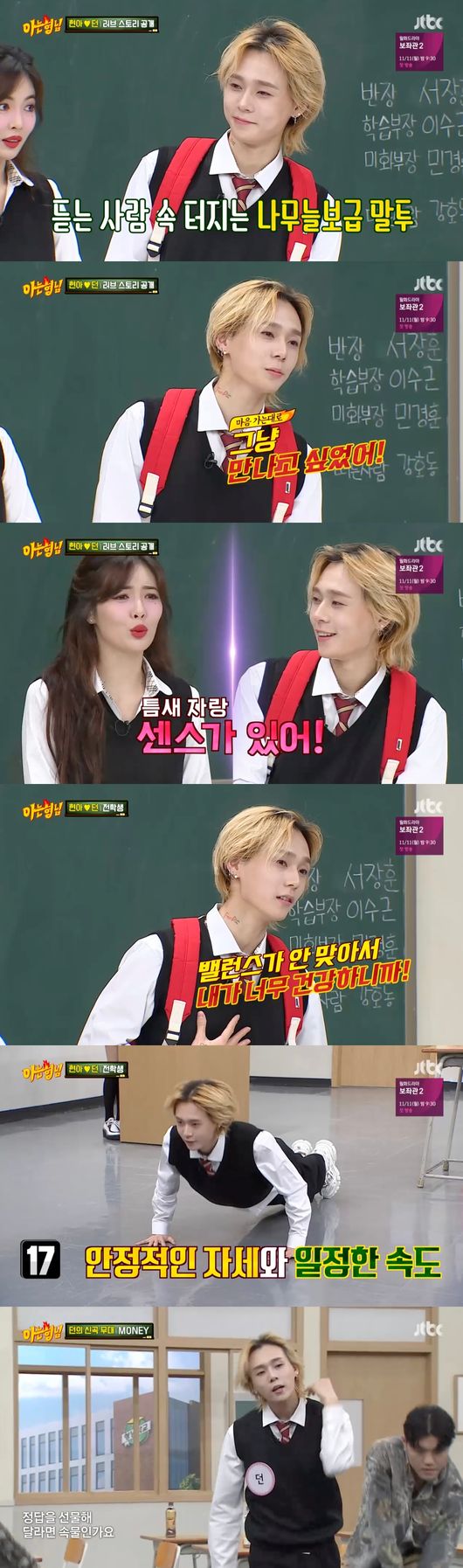 가수 던이 '아는 형님'에서 '병약미' 대신 건강한 매력을 자랑했다. 현아가 왜 그에게 반했는지 십분 이해할 수 있는 시간이었다.