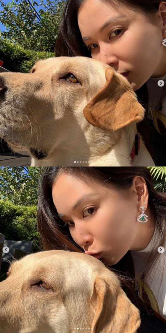 공개된 사진에는 반려견과 함께 다정한 모습으로 애정을 표현하고 있는 고소영의 모습이 담겨 있다. 고소영은 반려견을 사랑스럽게 바라보고 입을 맞추는 등 애정을 드러내고 있다. 예쁜 미모가 돋보였다.