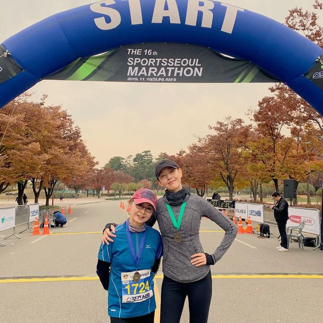 모델 한혜진이 어머니와 마라톤에 도전했다.