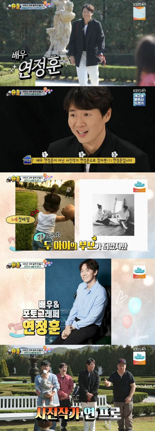 연정훈은 "배우가 아닌 사진작가"라면서 사진을 소개, 2005년 연정훈은 아내 한가인과 결혼에 골인, 14년차 워너비 부부이자 두 아이를 둔 아빠가 됐다. 그러면서 연정훈은 개인 사진전을 열 만큼 수준급 사진실력을 드러내면서 "아이들이 너무 예쁘기도 하고 좋은일에 동참하고 싶었다"며 사진작가 포스를 드러냈다.