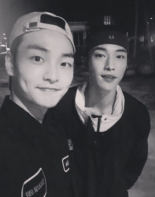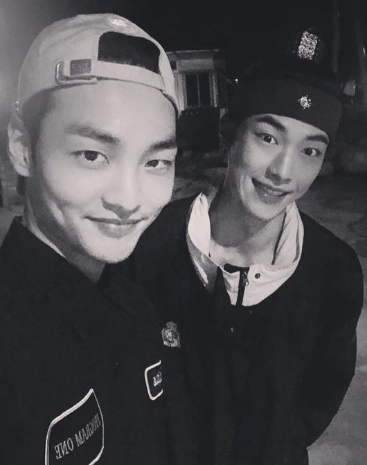 배우 김민재가 함께 '위대한 유혹자'에 출연했던 배우 우도환과 친분샷을 공개했다.