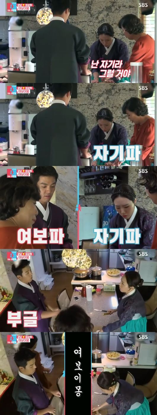 가족들이 모두 모여 함께 만두를 빚기로 했다. 강남은 "한복 예쁘다"며 이상화에게 눈을 떼지 못하면서 "오늘부터 시작되는 느낌, 여보라고 해봐라"고 제안했다. 하지만 이상화는 "싫다"면서 "난 자기라고 그럴 것"이라며 이를 거부했다.