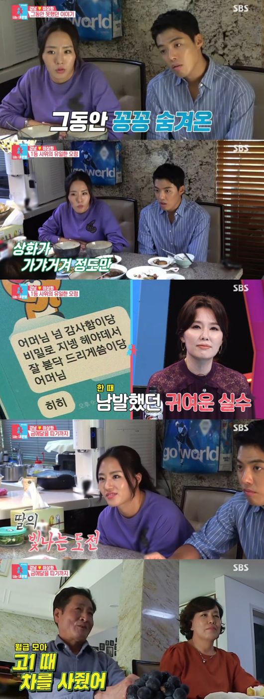 이어 두 사람은 부모님을 위한 선물을 전했다. 결혼한 후 어떤지 묻자 강남은 "이제야 실감이 난다"며 남다른 감회를 전했다. 이상화父는 "이제 가장, 가장은 짐이 무겁다, 매사에 신중히 생각하길 바란다"며 결혼에 대한 책임감을 전했고, 이상화母는 "상화 행복하게 잘 해줘라"며 두 사람이 잘 살기를 바랐다.