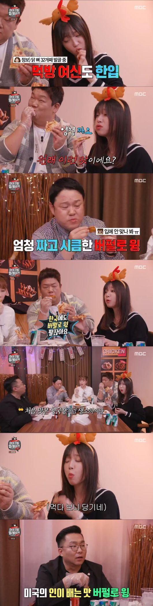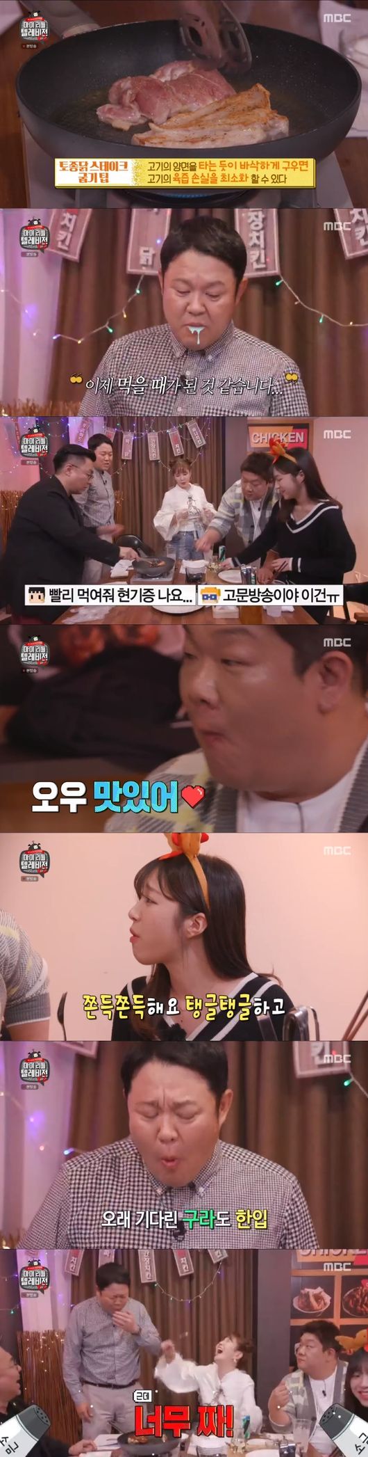 11일 오후 방송된 MBC '마이 리틀 텔레비전V2' 치킨 주점으로 꾸민 구라이브에서 치킨에 대한 정보들과 함께 먹방이 진행 됐다.