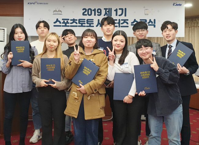 국민체육진흥공단이 발행하는 체육진흥투표권 스포츠토토의 수탁사업자인 ㈜케이토토가 지난 8일(수)에 서울올림픽파크텔 로마홀에서 2019년 제 1기 ‘스포츠토토 서포터즈’의 수료식을 성공적으로 마무리 했다고 전했다.