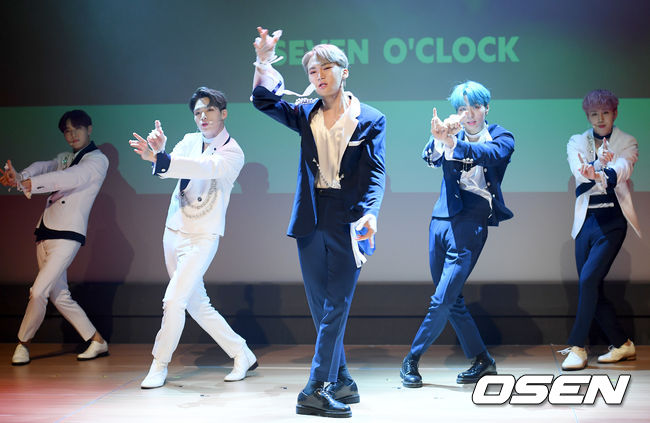 세븐어클락은 12일 서울 마포구 상암동 에스플렉스 센터에서 세 번째 미니앨범 ‘백야’ 발매 쇼케이스를 열었다. 이날 세븐어클락은 타이틀곡 ‘미드나잇 썬’과 수록곡 ‘화이트 나이트’ 무대를 꾸몄다.