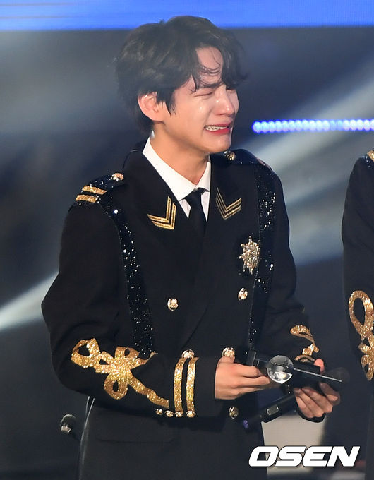 그룹 빅톤(VICTON)허찬이 1위를 하고 감격의 눈물을 흘리고 있다. /ksl0919@osen.co.kr