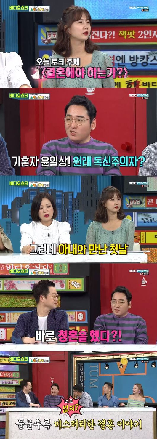 이날 MC박소현은 토크 주제를 꺼내며 "오늘 주제는 사심을 담아서 준비했다. 결혼 꼭 해야하는가"라고 말했다. 김숙은 "윤일상씨가 원래는 독신주의자였다고 하더라"라고 물었다.