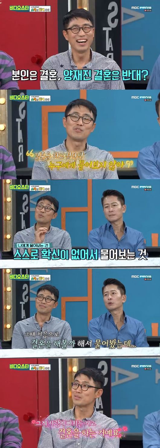 이에 양재진은 "그때 처음으로 결혼을 해야 한다는 생각을 했는데"라고 말해 웃음을 자아냈다. 이어 양재진은 "형 말이 맞았다. 내가 확신이 있으면 물어보지 않았을 것"이라고 말했다.
