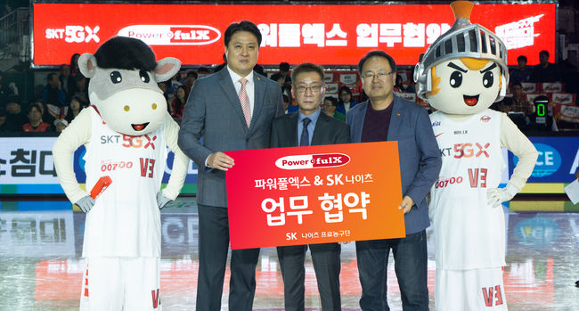 서울 SK와 파워풀엑스는 지난 10일 학생체육관에서 열린 서울SK의 홈 경기에서 2019-2020시즌 업무 협약식을 체결 했다.